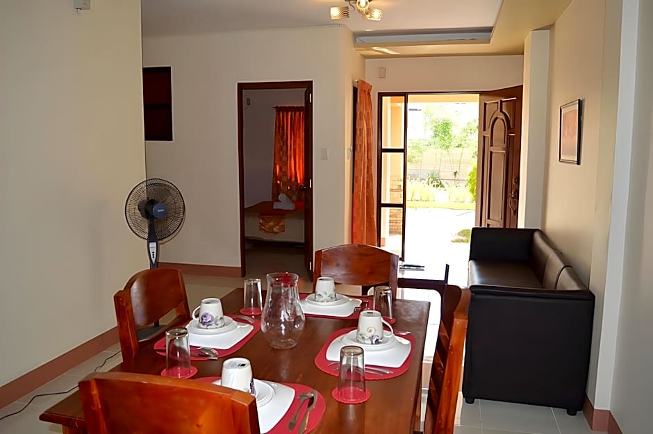 This fully furnished apartment features a living room with sofa, a dining area, a well-equipped kitchen and separate bedrooms with air conditioning. The private bathroom has bidet and shower facility.